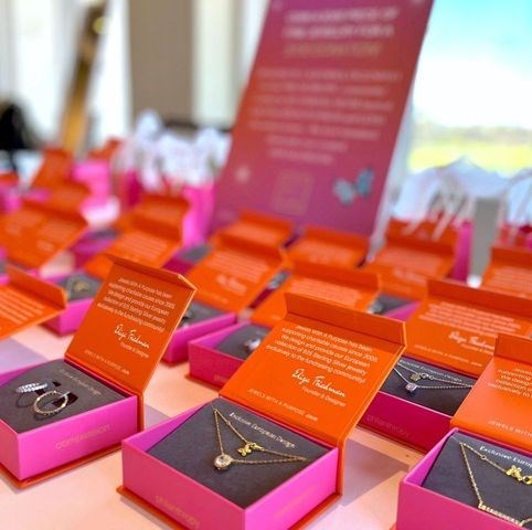 WITH A DONATION EVERYONE WINS! Designed in California and finely crafted in Europe, in solid 925 sterling silver with heavy gold overlay and world-renowned zirconia – the best simulated diamonds ever created! Enjoy a stunning necklace, earrings or bracelet, while supporting a wonderful cause! Each piece, beautifully packaged for gifting and exclusively created for the philanthropic community. Limited opportunities to participate before they sell out.