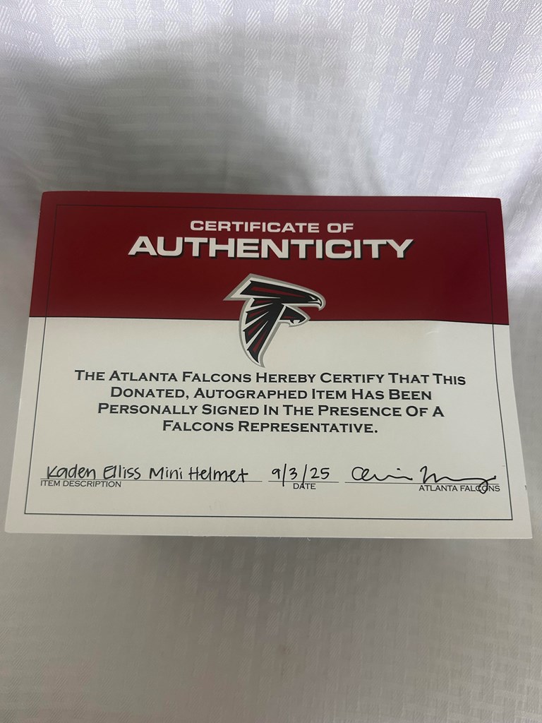 Kaden Ellis - Atlanta Falcons Mini Helmet Autographed VALUE $80